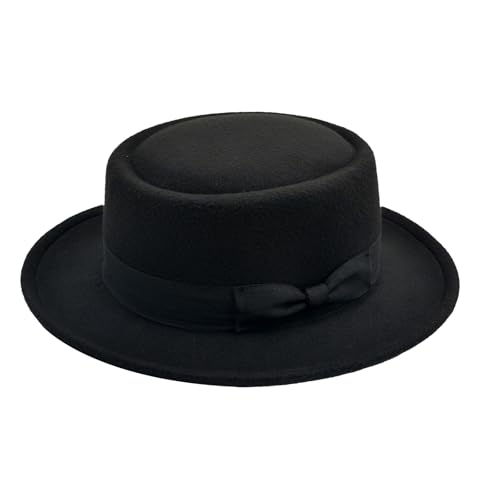 Men Women Pork Pie Hat Wool Felt Boater Porkpie Flat Top Derby Fedora Hat