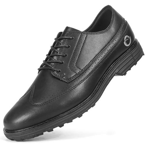 FitVille Mens Golf Shoes with Spikes Wide Professional Waterproof Spiked Golf Shoes for Men Outdoor Golf Shoes with Arch Support for Heel Pain Relief