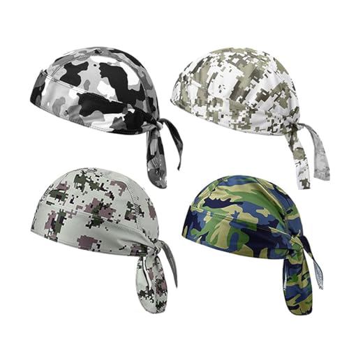 4 Pack Durags for Men, Breathable Skull Caps, Sweat-Wicking Bandana Head Wraps, Adjustable Cooling Helmet Liner for Cycling, Motorcycle, Running