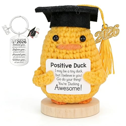 2 PCS Graduation Gifts Set Class of 2026, Inspirational Positive Duck with Keychain, Cap and Greeting Card, Cute Handmade Funny Emotional Support Pickle for Her Him High School College