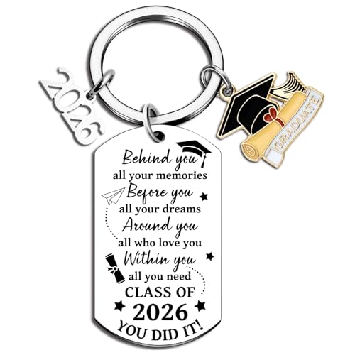 Custom Class of 2026 Graduation Keychain with Name, Graduation Gifts for Her Him, Personalized Graduate Key Chain Bulk, Middle High School College Master Degree Phd Grad Gift for Student Son Daughter