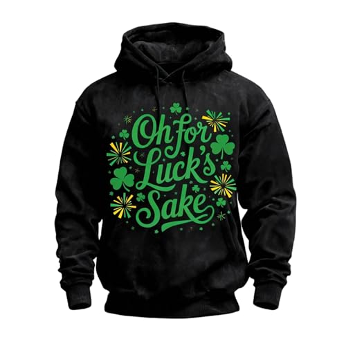 St.Patrick's Day Hoodie for Men Funny Shamrock Print Sweatshirts Long Sleeve Hooded Irish Casual Hoodies Holiday Party Outfit