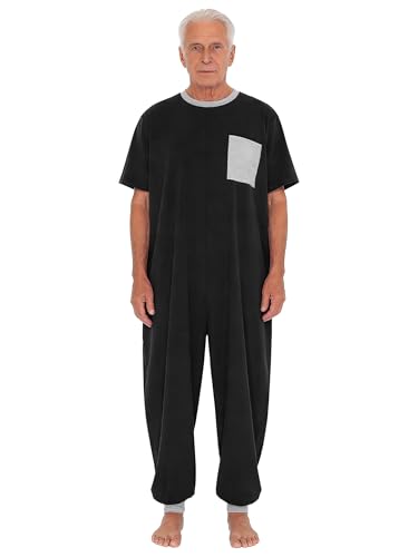 EEOST Adaptive Clothing for Men, Anti-Strip Back-Zip Cotton Romper, Elderly Care Onesie for Special Needs and Disabilities