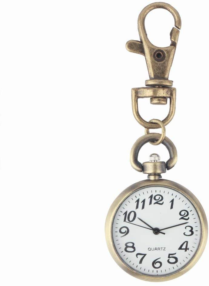 JewelryWe Unisex Nurse Watch Fob: Quartz Analog Easy Read Clip-On Pocket Watch for Doctor Medical Professionals