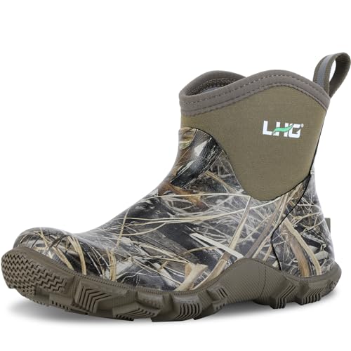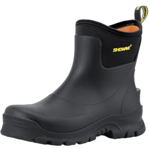 Showave Men's Rubber Boots Waterproof Rain Footwear Durable Short Hunting Boots for Mud Gardening Yard and Chore Working