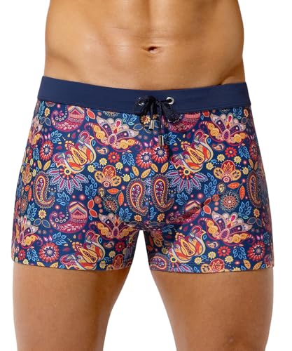 FEOYA Mens Swim Trunks Swimwear Square Leg Swim Briefs Beach Padded Board Shorts Bathing Suit Bikini
