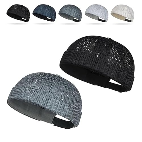 Clakllie Cotton Brimless Docker Cap for Men Retro Sailor Cap Rolled Cuff No Brim Hat Casual Worker Skull Caps Women's Beanie