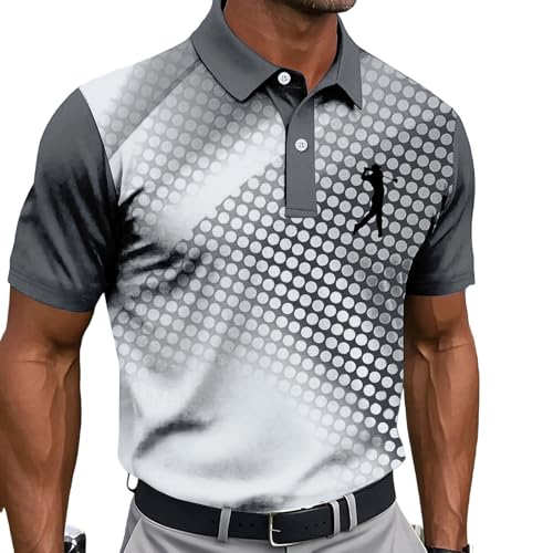 HMIYA Mens Short Sleeve Polo Shirts Button Color Block Cotton Tops