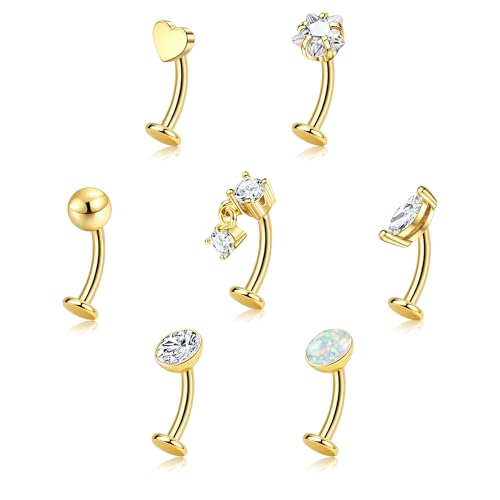 LEE&RO Gold Belly Button Ring for Women - Surgical Steel Navel Piercing Jewelry 14G