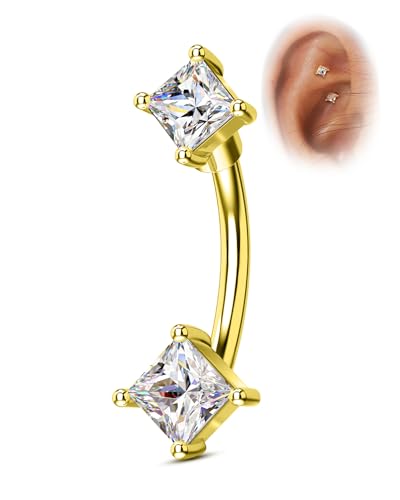 COCHARM 16G Rook Earrings Square Zirconium Eyebrow Rook Piercing Jewelry Stainless Steel Vertical Lip Jewelry Belly Button Ring