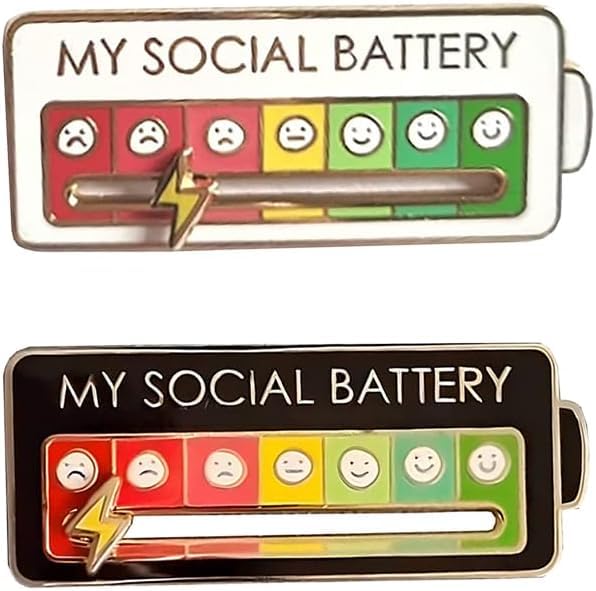 Social Battery Pins Interactive 7 Days Mood Enamel Black White Alloy For Clothing Backpack Hat Daily Wear Bag Ornament Fashion Accessory 锛2Pcs锛
