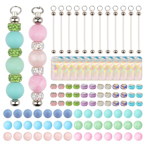 80PCS Beads for Pens Making, Included Rondelle Spacer Bead and 20mm Rainbow Acrylic Bead for Jewelry Making, Bracelets, Beadable Pens, Keychains Crafts