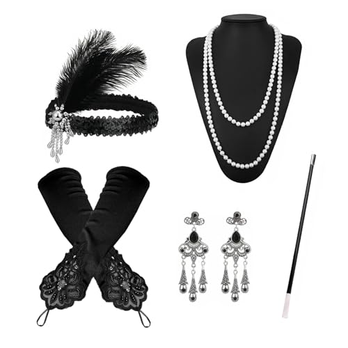 DRESHOW 1920s Accessories Set for Women Flapper Costume Accessories Feather Headband Roaring 20s Accessories Set