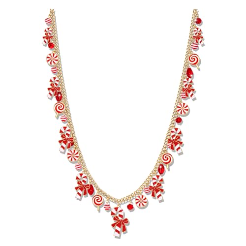 boderier Santa Candy Cane Necklace Christmas Necklaces for Women Long Candy Beaded Charm Necklace Pendant Santa Holiday Festive Jewelry Necklace (Candy Cane)