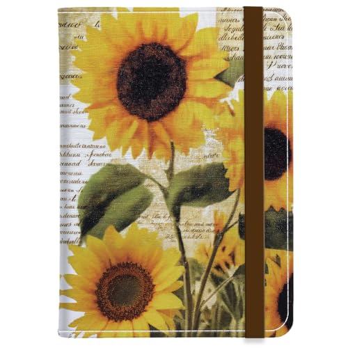 CRAFTYMELODY PU Leather Passport Holder Cover 5.9脳4.3 Inch with Credit Card Slot Boarding Pass Slot Combo Blocking Passport Holder Wallet Cover Case for Travel Boarding Essentials(Vintage Sunflower)
