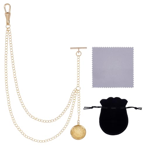 PH PandaHall 3pcs Pocket Watch Chain with Locket Pendant Antique Silver Platinum Mens Vintage Vest Chains for Business Wedding Gifts Fathers Day Christmas Retro Accessories Decoration