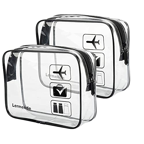 2 Pack TSA Approved Liquids Bag, Carry-on Clear Travel Toiletry Bag with Zipper, Quart Size Clear Makeup Bag Travel Essentials for Women Men