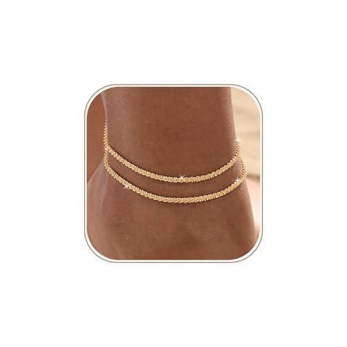 Warshion Ankle Bracelets for Women - 14K Gold Plated Waterproof Gold Anklet Delicate Chain Women's Anklets Summer Beach Pearl Jewelry Layering Gift Non Tarnish