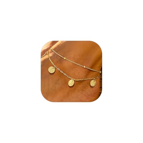Dabovos Gold Ankle Bracelets for Women 18K Gold Plated Heart Beads Dots Coin Snake Chain Anklets Dainty Layered Anklet Simple Summer Beach Waterproof Foot Bracelet Jewelry Gift
