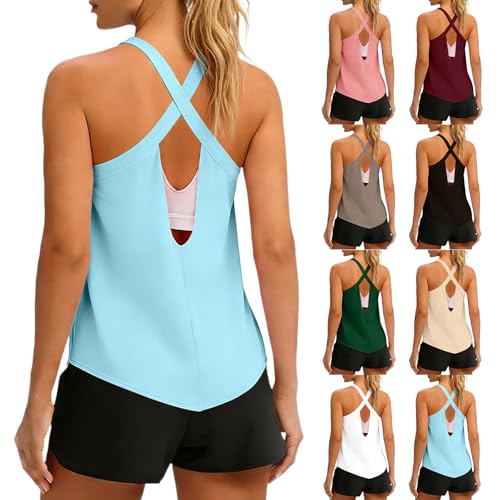 VOYJOY Impact Longline Strappy Top Workout Tank Tops for Women Impact Gym Sports Bra Camis