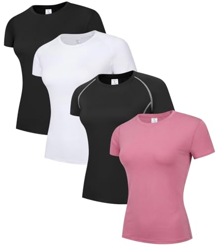 QOMEWA 2 Pack Women's Thermal Long Sleeve Shirts Slim Fit Thermal Underwear Lightweight Fleece Lined Base Layer Shirts