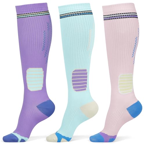 Compression Socks for Women and Men (3-Pairs) Best Support for Running, Flying, Pregnancy - Knee High Graduated Compression Stockings 15-20mmHg