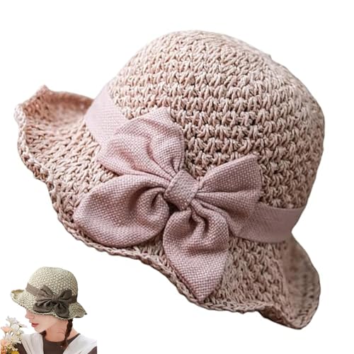 soul young Womens Straw Sun Hat Wide Brim Hand Woven Foldable Beach Bucket Hat for Summer Travel UV Protection UPF 50+