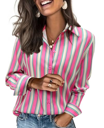ruisin V Neck Blouse for Women Long Sleeve Button Down Shirt Striped Tunic Tops