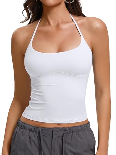 CRZ YOGA Butterluxe Workout Tank Tops for Women U Neck Padded Crop Tops Athletic Camisole Tops with Built in Bra