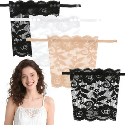 3 Pack Lace Camisoles for Women Cleavage Cover Up for Low Neckline, Adjustable Invisible Bra for Ladies Dresses
