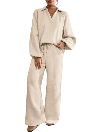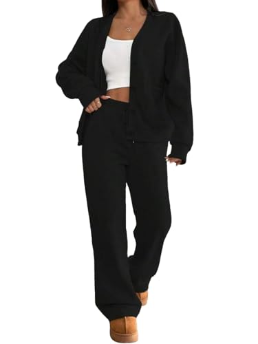 Yihaojia 2 Piece Set Women Fall Outfit Dressy Sweater Sets V Neck Long Sleeve Knit Pullover and Wide Leg Pants Lounge Sets