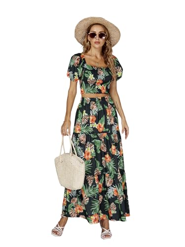 Floerns Women's 2 Piece Set Twist Backless Halter Tops and Maxi Skirt Matching Set
