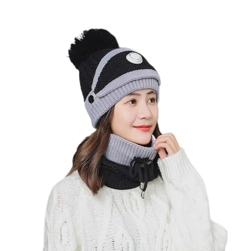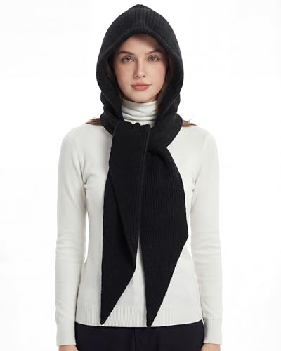 Aurorasports Winter Hat for Women Hooded Scarf Neck Warmer Ski Mask Balaclava for Cold Weather Windproof Drawstring Knit Hat
