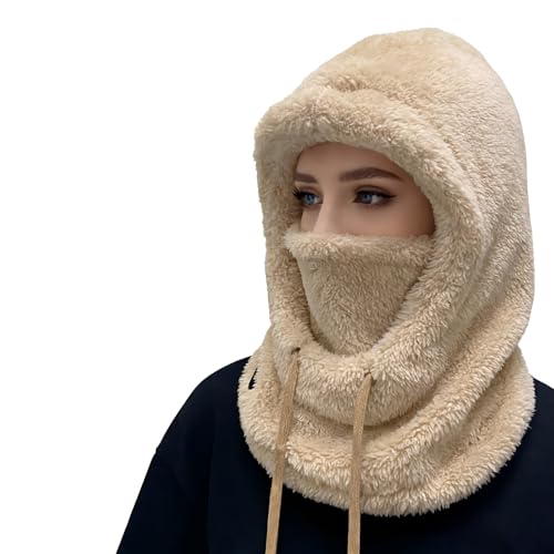 Sherpa Hood Ski Mask, Wind-Resistant Winter Face Mask, Fleece Ski Mask for Men Women, Warm Face Cover Hat Cap Scarf