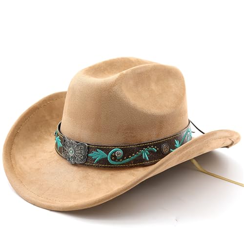 JOYEBUY Classic Wide Brim Women Men Western Style Cowboy Cowgirl Hats with Buckle Belt