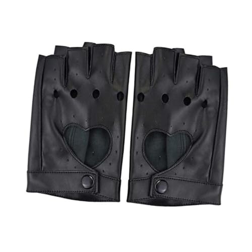 JISEN Women Punk rivets Belt Up Half Finger PU Leather Performance Gloves