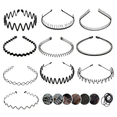 Wavy Spring Sports Headband, 4Pcs Metal Hair Bands, Head Hoop Black Wave-Shaped Hair Band for Men Women Non-Slip Headband Accessories Simple Elastic Non Slip Wide Headwear Bandeau Outdoor