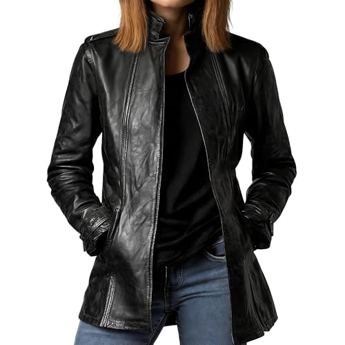 Sexyshine Women's Oversized Faux Leather Jacket Lapel Collar Zip Up Long Sleeve PU Leather Coat Motorcycle Bomber Overcoat