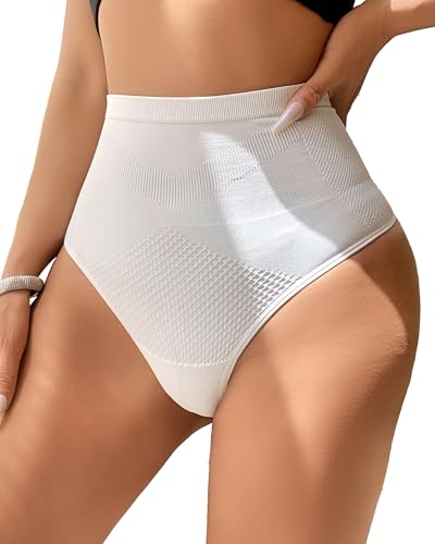 GAREDOB Women's Ribbed Cotton Thongs High Waist Thong Panties Plus Size High Rise Comfortable Thong