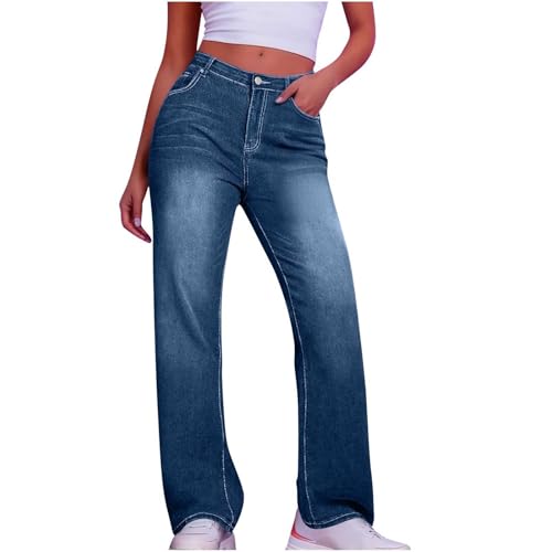 High Waisted Jeans for Women Straight Leg Stretch Denim Pants Dressy Casual Tummy Control Wide Leg Jeans Trousers