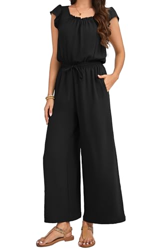 Womens Casual Summer Jumpsuits for Women Dressy 2026 Fashion Ruffle Cap Sleeve Romper Crew Neck One Piece Outfits