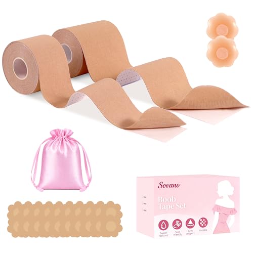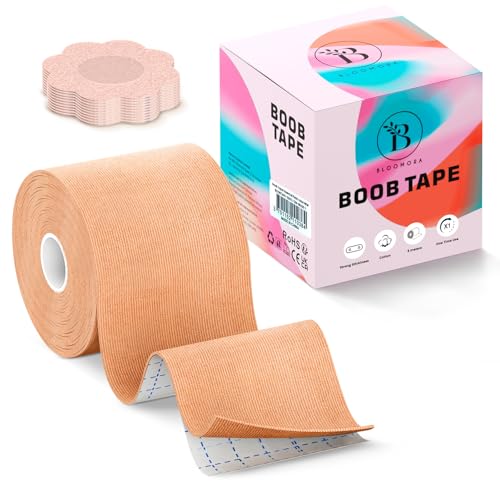 BLOOMORA Boob Tape Essential 鈥 3鈥 Wide Boobtape - Silicone Nipple Covers - Body Tape for Breast Lift - Breast Lift Made for Fuller Support - Strapless Bra Alternative - Beige