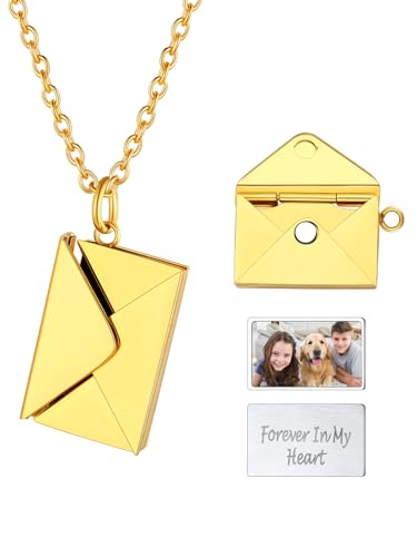 KunBead Gold Open Heart Picture Locket Pendant Necklace Letter A-Z Initial Photo Locket Necklaces for Picture-Stainless Steel