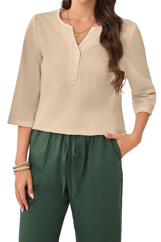 SEAOPEN Linen Tops for Women 2025 Trendy Boho Shirt Vintage Lace Tie V Neck Embroidered Tunics Summer 3/4 Sleeve Blouses