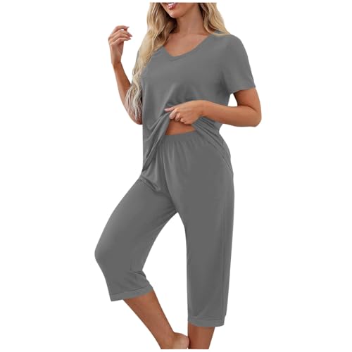 Pajama Sets for Women 2 Pieces Ruffled Lounge Sets Short Sleeve Shirts and Shorts Sleepwear with Pockets