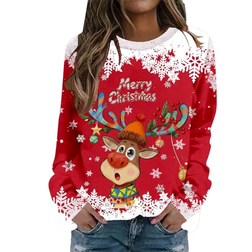 Ugly Christmas Sweatshirts for Women Crewneck Long Sleeve Funny 3D Santa Print Pullover Tops Casual Cute Xmas Sweater