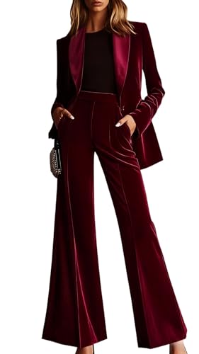 TOPGH Velvet Womens Pant Suit 2 Piece Set Women Formal Office Work Suit Wedding Prom Tuxedo