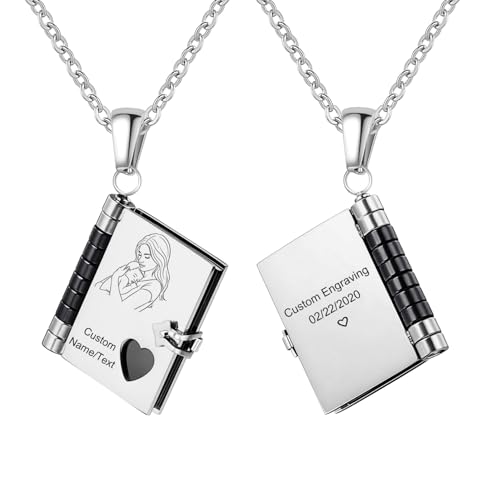KunBead Round 20 inch Love Open Photo Locket Necklace with Picture inside-Stainless Steel for Women