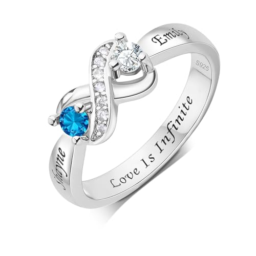 Bestyle Personalized 1-4 Heart Birthstone Rings for Women - Sterling Silver Custom Engraved Promise Rings, Birthstone Mothers Ring Gift for Mom, Wife (Wedding, Valentines, Mothers Day)