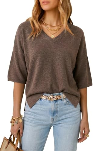 Jouica Women's Sweaters V Neck Long Sleeve Soft Loose Pullover Sweatshirts